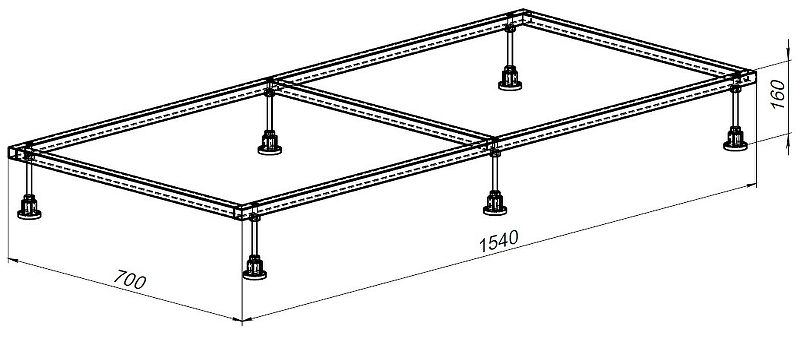 Размеры (ШхВхД): 1540х160х700 мм.