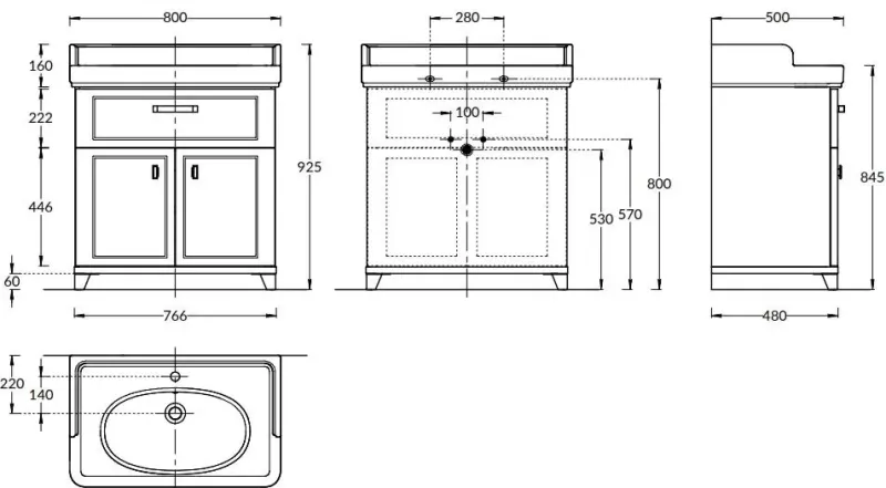Мебель предназначена для установки раковины POMPEI шириной 80 см. Тумба с одним ящиком и нижней секцией, скрытой за двумя распашными дверцами, весьма функциональна: сверху можно хранить принадлежности для ванной, а внизу — всё то, что позволяет поддерживать её в чистоте и порядке.   Обновлённые тумбы POMPEI легко узнать по характерному классическому дизайну с фасадом, скруглённым по двум сторонам. Вместительный ящик тумбы внутри выполнен с отделкой «лён антрацит», характерной для большинства новых моделей мебели KERAMA MARAZZI.