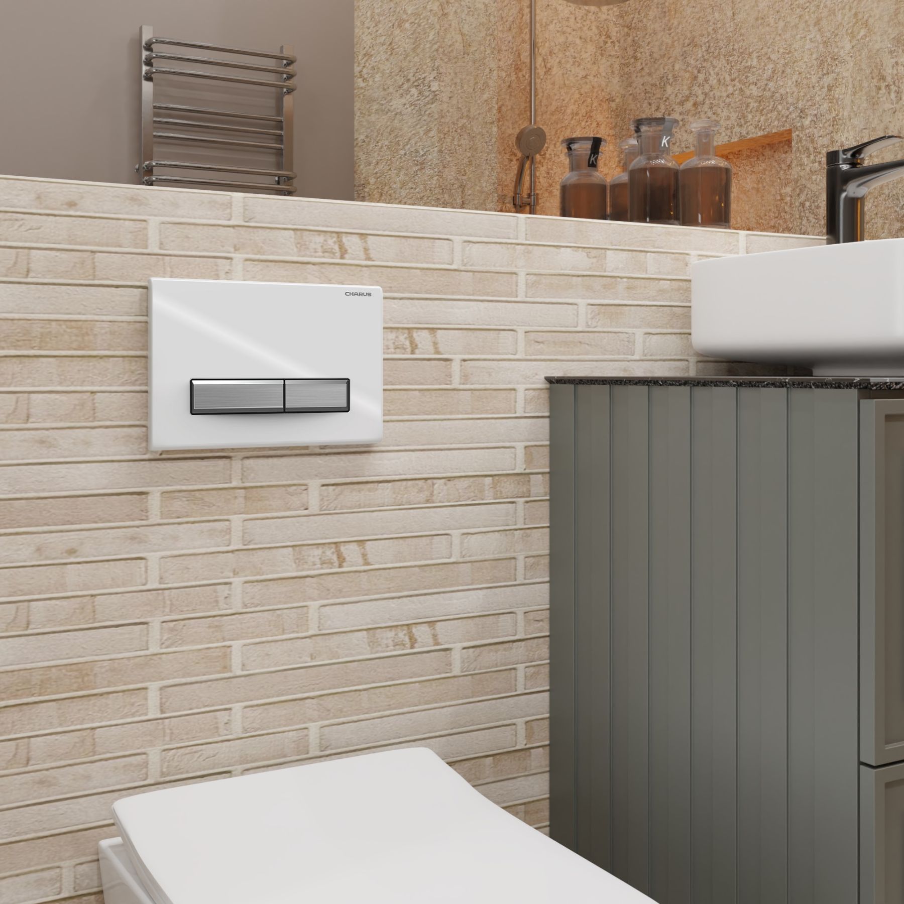 Клавиша смыва Charus Raiden FP.321.WBN.01 белый глянцевый с хромированными кнопками купить