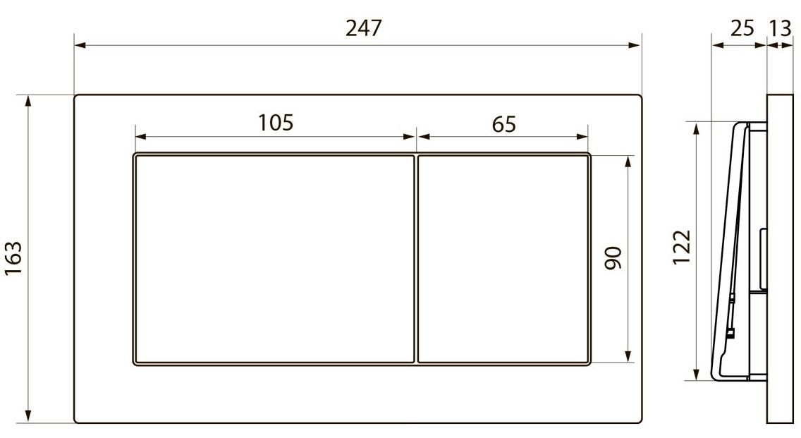 Клавиша смыва Point - представляет собой деталь системы инсталляции, которая приводит в действие спуск воды в унитаз. Такая кнопка отличается комфортом и практичностью в эксплуатации, а также имеет эстетичный внешний вид.Кнопки для инсталляций Point – оптимальный выбор для любого санузла, так как обладают современным дизайном, высокой технологичностью и простотой в использовании.