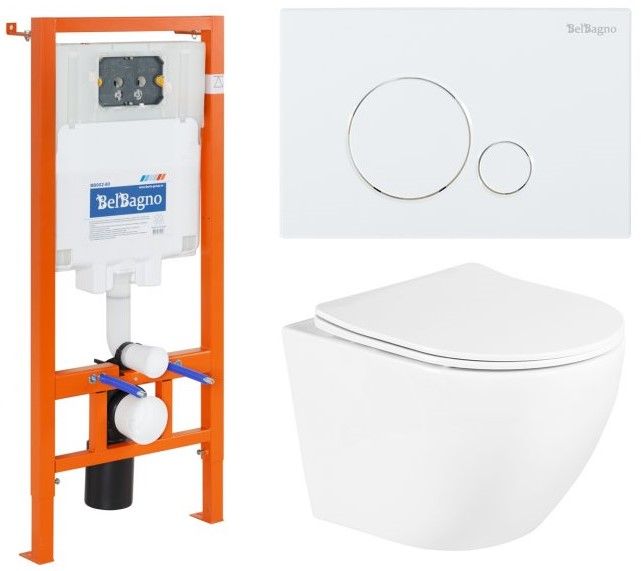 Комплект 3 в 1 BelBagno BB3105CHR/SC/BB002-80/BB014-SR-BIANCO унитаз подвесной с сиденьем UNO BB3105CHR/SC система инсталляции для унитазов BB002-80 с кнопкой смыва BB014-SR-BIANCO