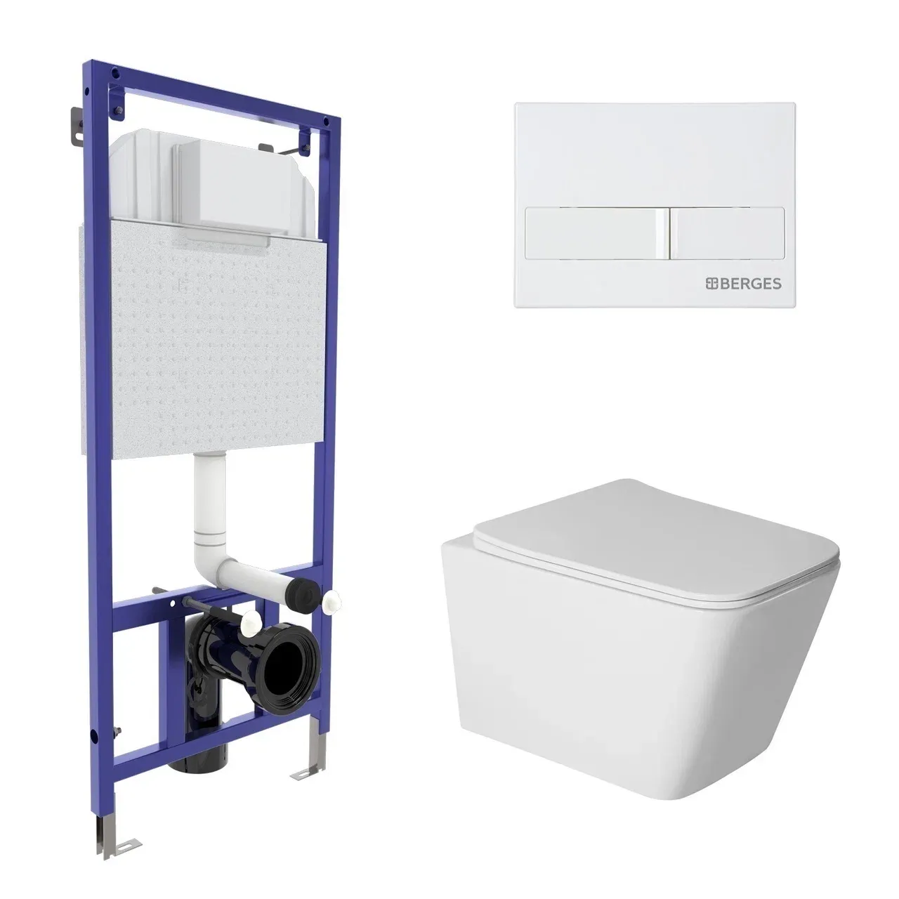 Комплект Berges 043397: инсталляция NOVUM кнопка L1 белая унитаз Sigma Rimless сидение дюропласт быстросъём купить