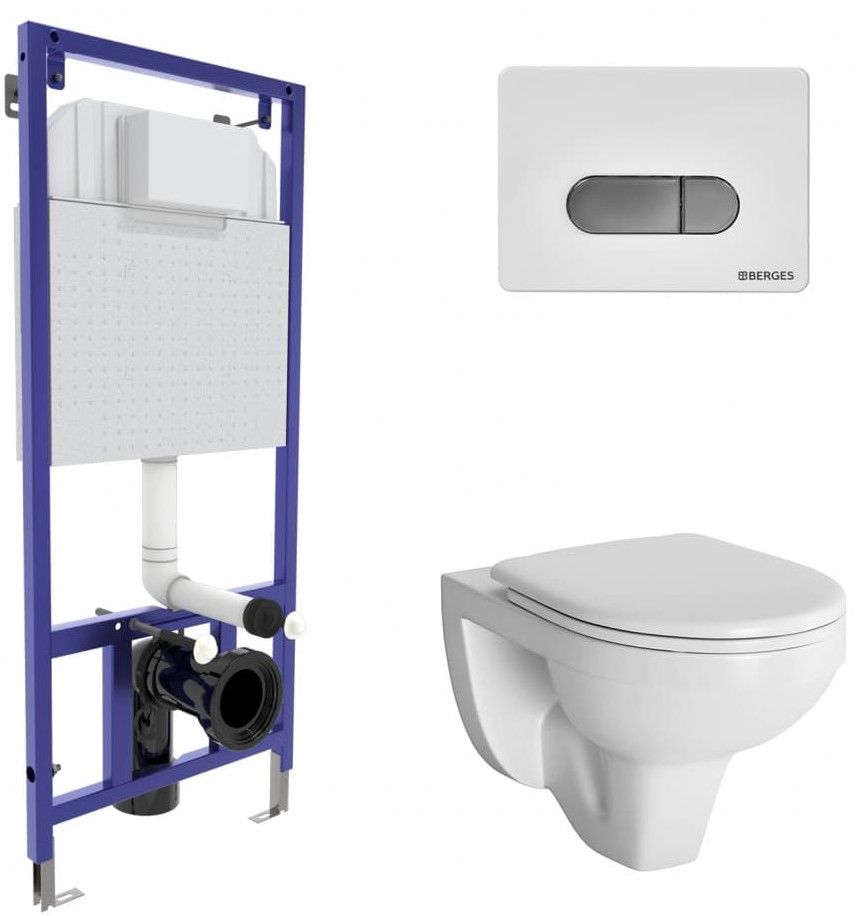 Комплект Berges 4в1 042419: инсталляция NOVUM525 кнопка D7 белая/хром унитаз Gamma сиденье микролифт купить
