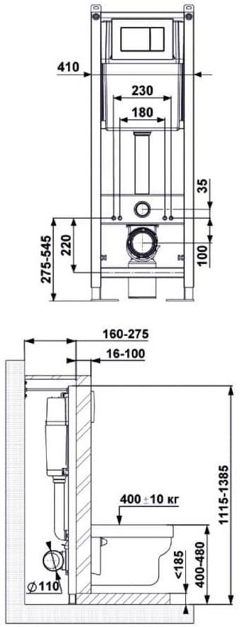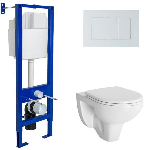 Инсталляция АТОМ 410Узкая рама шириной 410 мм.Регулировка по длине: 1115-1385 мм.Металлический каркас, окрашенный антикоррозийной эмалью.Расчетная нагрузка 400кг. Объём резервуара воды 10 л с тепло- и шумоизоляцией.Подвод воды внутрь резервуара (G1/2 наружная).Объем смыва 3/6 литра с возможностью регулировки.Управление механическое, две кнопки.Межосевое расстояние под шпильки для подвеса унитаза 18 и 23 см. Полный комплект для установки включает в себяшумоизоляционную прокладку и лекало для монтажных отверстий. Кнопка АТОМ белаяУнитаз GAMMA каскадный смыв, открытый ободокантибактериальное покрытиеэкономия воды Сиденье дюропласт Gammaмикролифт, быстросъем