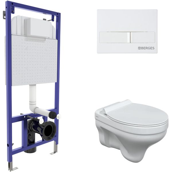Комплект Berges 4в1 042436: инсталляция NOVUM кнопка L1 белая унитаз Albit S сиденье Top Slim SO