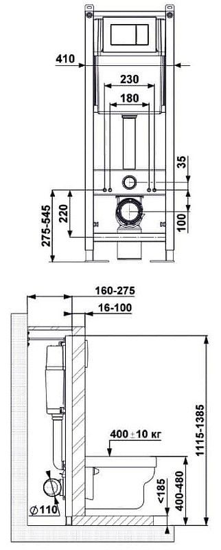 Инсталляция со смывным бачком Atom Line 410 и клавишей смыва.