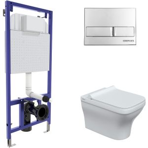 Комплект унитаза с инсталляцией Berges Wasserhaus Novum 042448 с сиденьем Микролифт и клавишей смыва Хром глянцевый.Характеристики:Унитаз Strati Rimless:Цвет: белый.