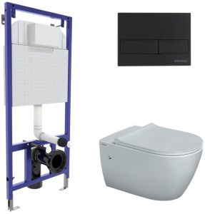 Комплект Berges 4в1 043217: инсталляция NOVUM525 кнопка L5 SoftTouch чёрная унитаз Mascon Rimless сиденье Toma Slim SO