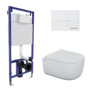 Комплект Berges 4в1 043309: инсталляция NOVUM 525 кнопка L1 белая унитаз EGO Rimless сидение Okus Slim SO