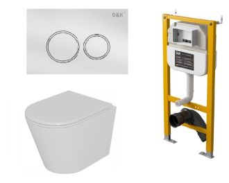 Комплект Унитаз подвесной безободковый DQ Venice DT1026016, 515*355*365мм, сиденье микролифт, белый+Инсталляция рамная скрытого монтажа  DI8050127, 500*117*1270мм, для подвесного унитаза+Клавиша смыва DQ Bayern DB1529016, белый