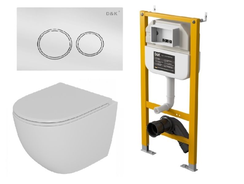 Комплект DQ Унитаз подвесной безободковый DT1396016, Инсталляция DI8050127, Клавиша смыва DB1529016, белый (DS1391614)