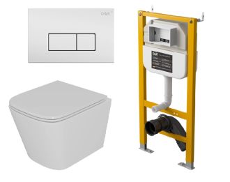 Комплект DQ Унитаз подвесной безободковый (торнадо) DT1436516, Инсталляция DI8050127, Клавиша смыва DB1499016 белый (DS1431622)