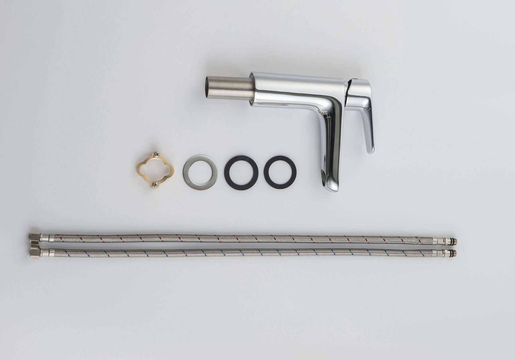 В комплекте: смеситель; гибкая подводка 60см; монтажный комплект