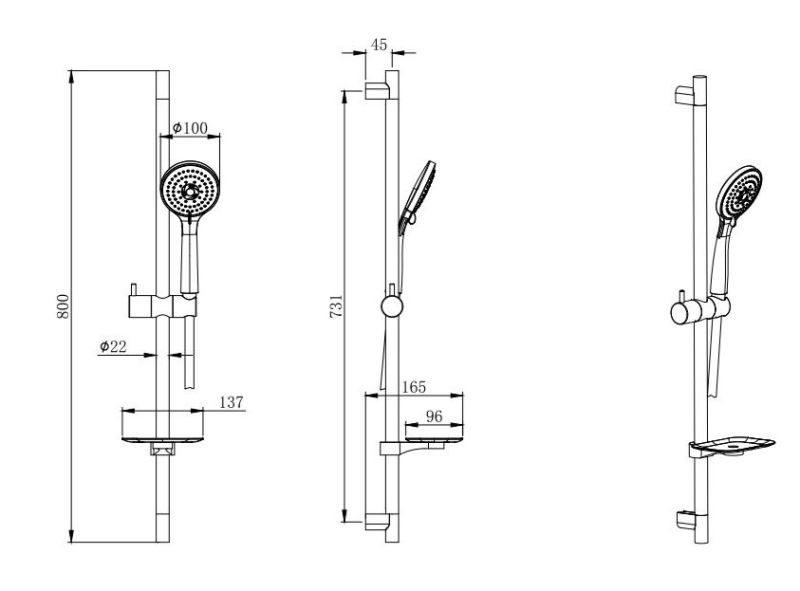 • Душевой гарнитур: душевая стойка с мыльницей, лейка, шланг
