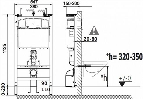 Инсталляция:Габариты: (ШхВxГ): 547x1125х15 мм.