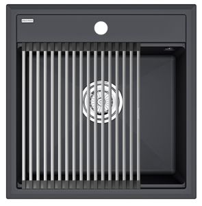 Комплект мойка STEPIA 50 + ролл-мат STEP, PM115051-AN+R375-BS.Стильный и многофункциональный комплект мойки из композитного материала на основе гранита и ролл-мата из высококачественной нержавеющей стали для создания комфортной рабочей зоны на вашей кухне.Мойка STEPIA 50 изготовлена из IT-GRANIT – композитного материала на основе гранита, благодаря чему мойка не потеряет свой первоначальный цвет за многие годы использования даже при длительном воздействии солнечных лучей. Материал мойки устойчив к сколам, царапинам и деформациям. На горизонтальных гранях чаши мойки предусмотрены специальные выступы-ступеньки, которые позволяют использовать такие аксессуары, как ролл-маты, доски, коландеры и пр. для создания дополнительной рабочей поверхности на кухне. Дно чаши мойки имеет 4 грани, направленных к сливу под индивидуальным градусом для максимально быстрого ухода воды.
