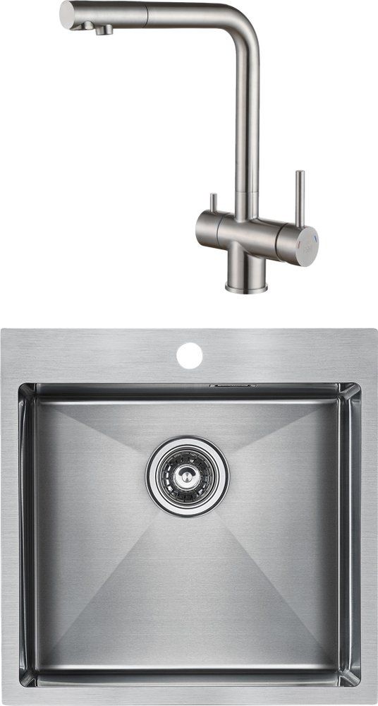 Комплект Paulmark Velten PM905151-BS брашированная нерж. сталь + Смеситель Paulmark Skalen Sk213020-SS для кухонной мойки купить