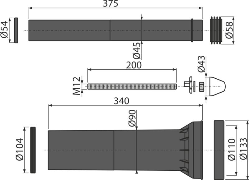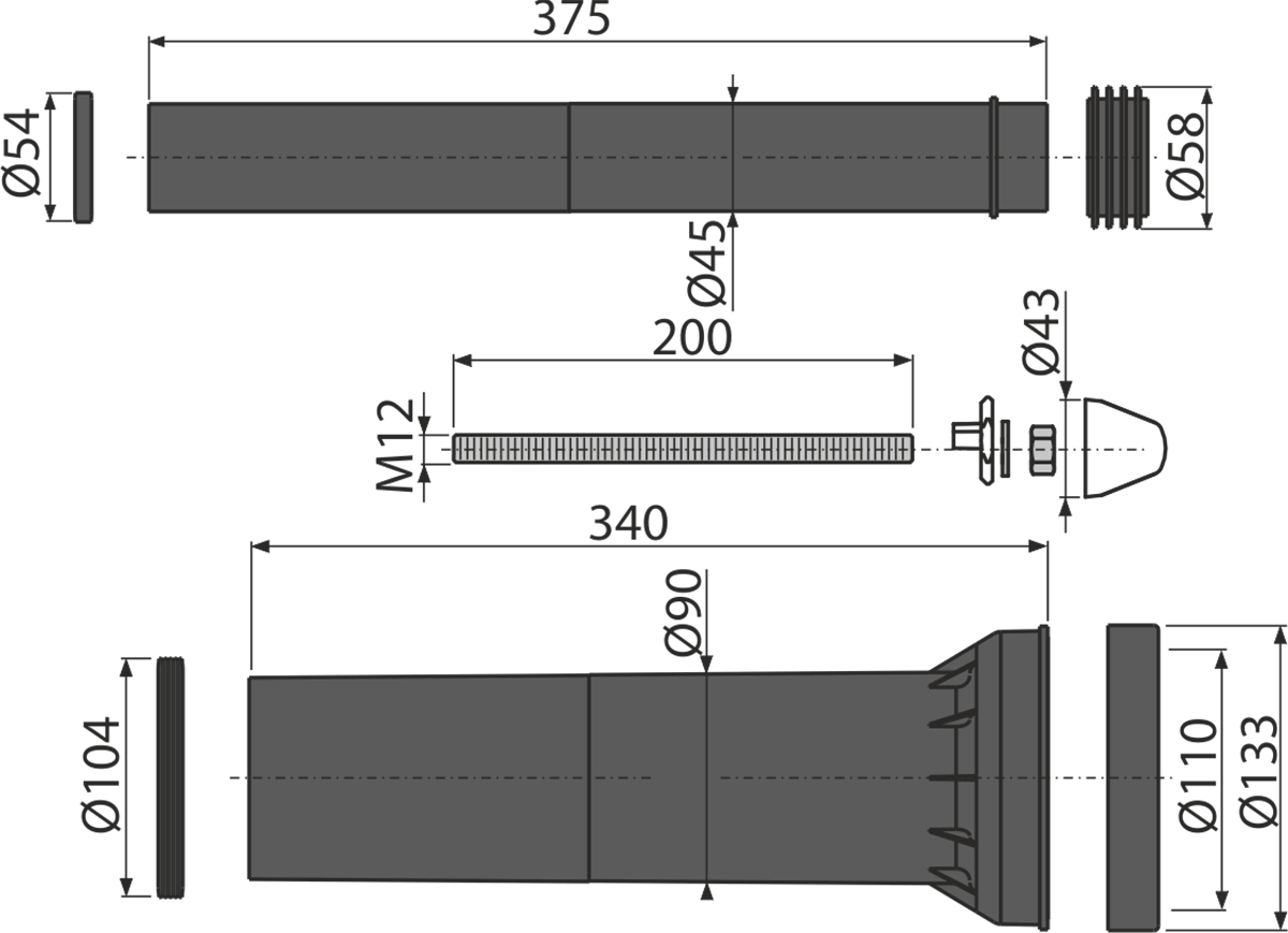 • Для подключения воды и канализации к подвесному унитазу – удлиненный набор