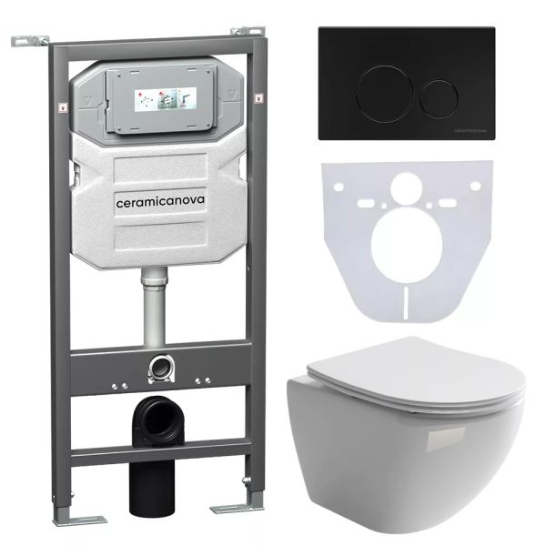 Комплект с инсталляцией Ceramica Nova CN4002_1001B_1000 унитаз Metropol CN4002 крышка-сиденье с микролифтом и инсталляция Envision CN1001B с чёрной матовой кнопкой смыва Round