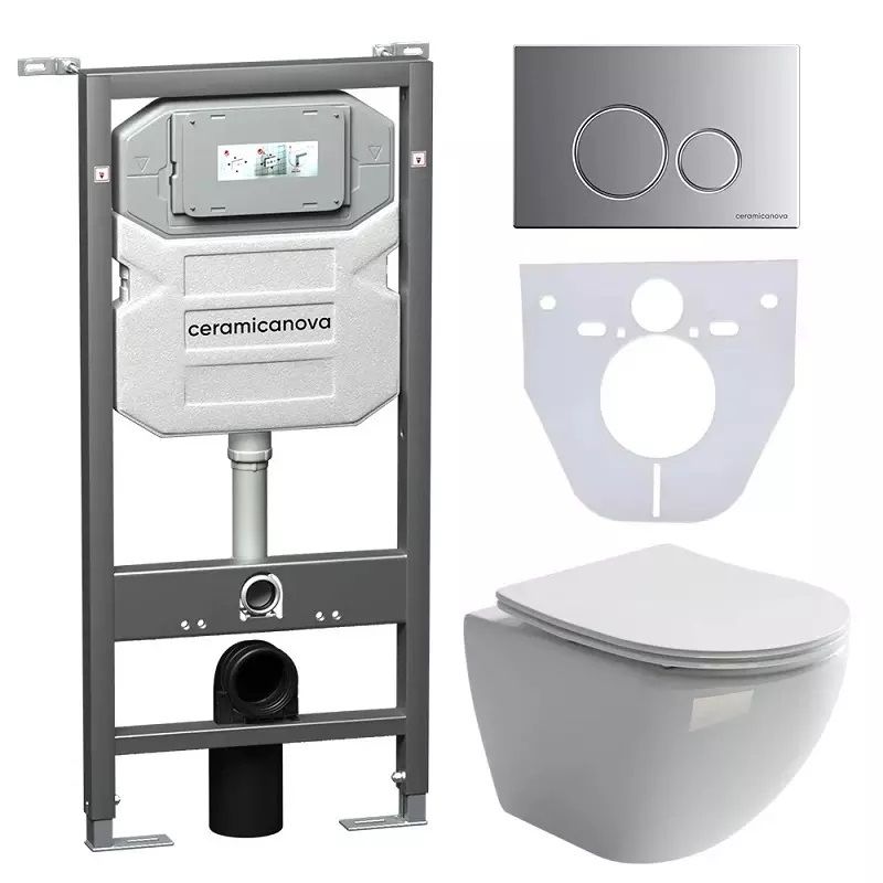 Комплект с инсталляцией Ceramica Nova CN4002_1001M_1000 унитаз Metropol CN4002 крышка-сиденье с микролифтом и инсталляция Envision CN1001M с кнопкой смыва хром матовый Round купить