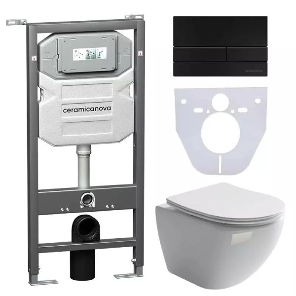 Комплект с инсталляцией Ceramica Nova CN4002_1002B_1000 унитаз Metropol CN4002 крышка-сиденье с микролифтом и инсталляция Envision CN1002B с чёрной матовой кнопкой смыва Flat