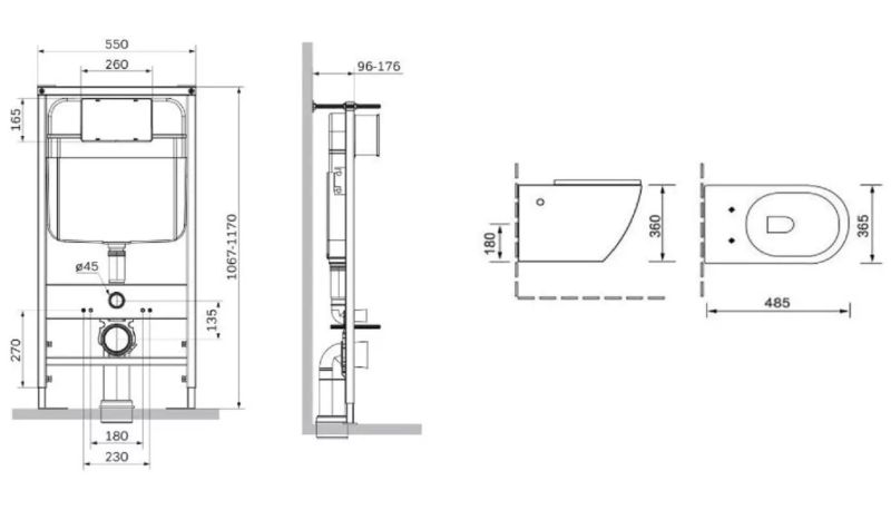 - Расстояние между болтами для монтажа унитаза: 18 см.