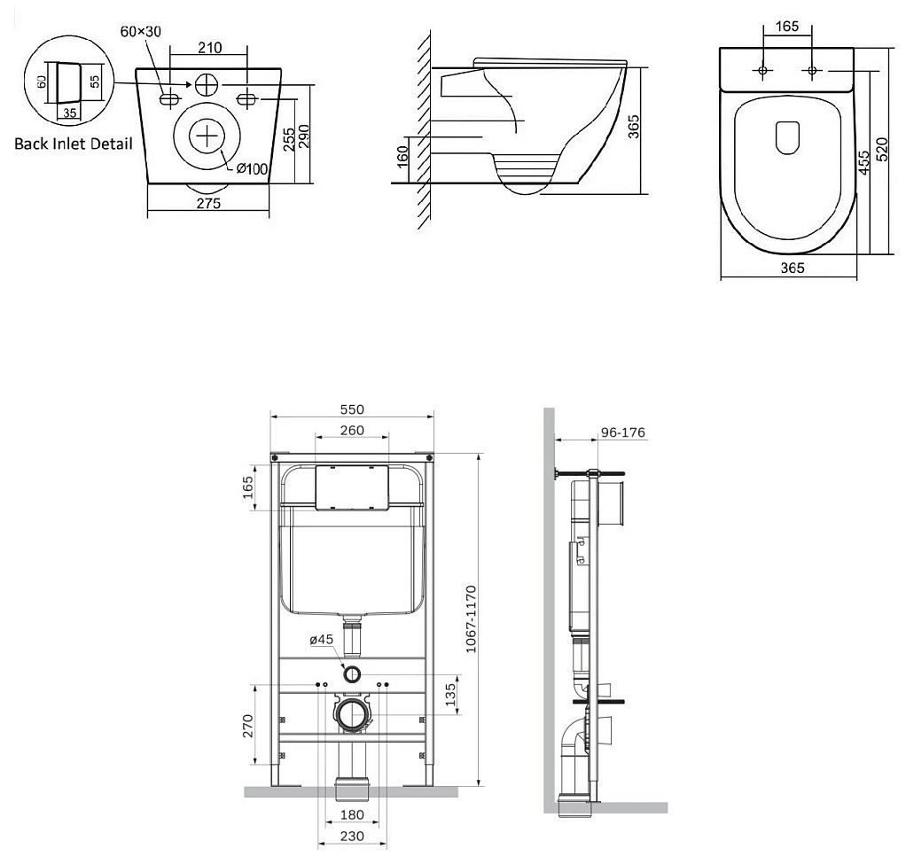 • Монтаж: встраиваемая перед стеной.