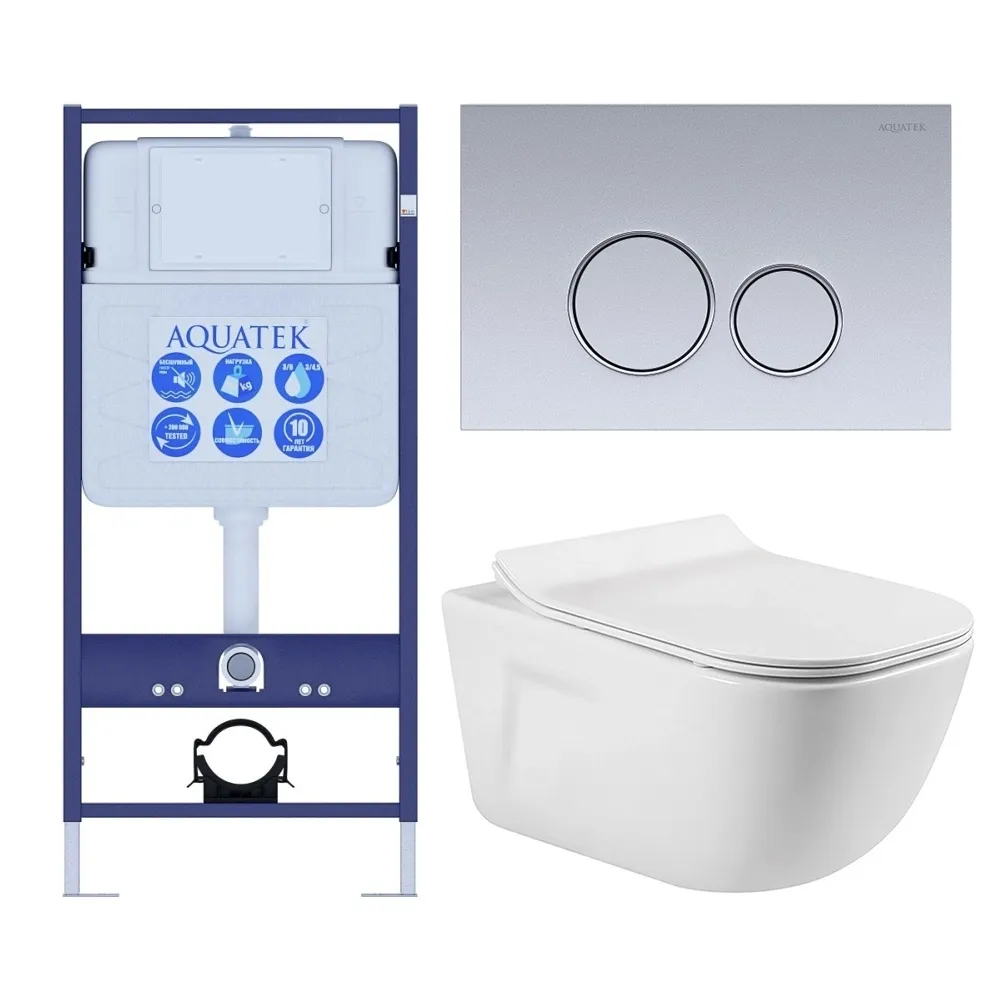 Комплект SET AQUATEK ДИВА-019 4в1 унитаз с инсталляцией кнопкой и сиденьем микролифт купить