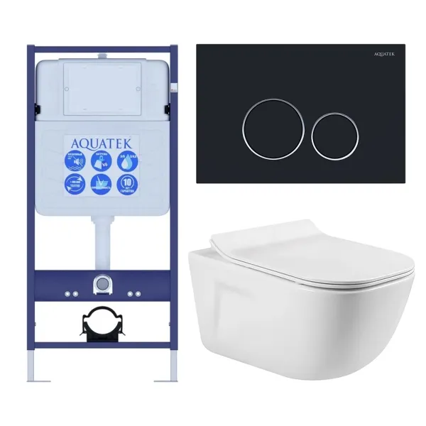 Комплект SET AQUATEK ДИВА-020 4в1 унитаз с инсталляцией кнопкой и сиденьем микролифт купить
