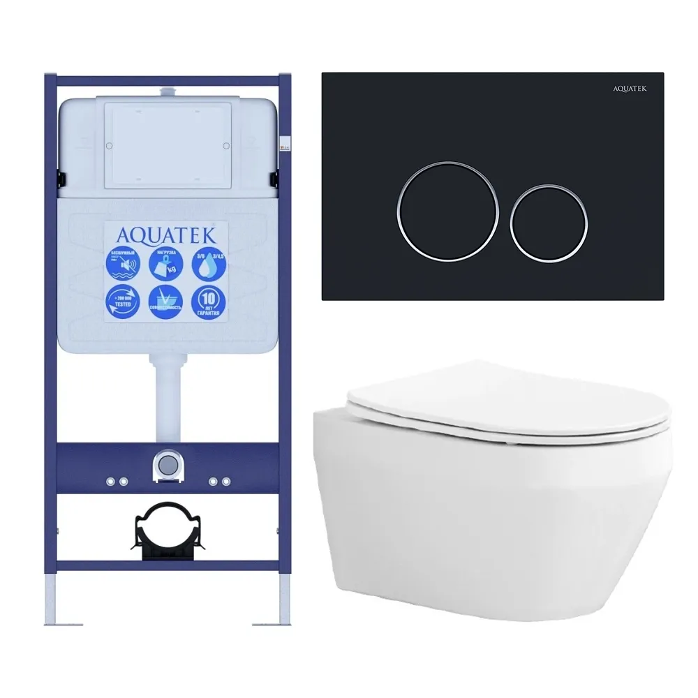 Комплект SET AQUATEK ЛЕЯ cm-020 4в1 унитаз с инсталляцией кнопкой и сиденьем микролифт купить