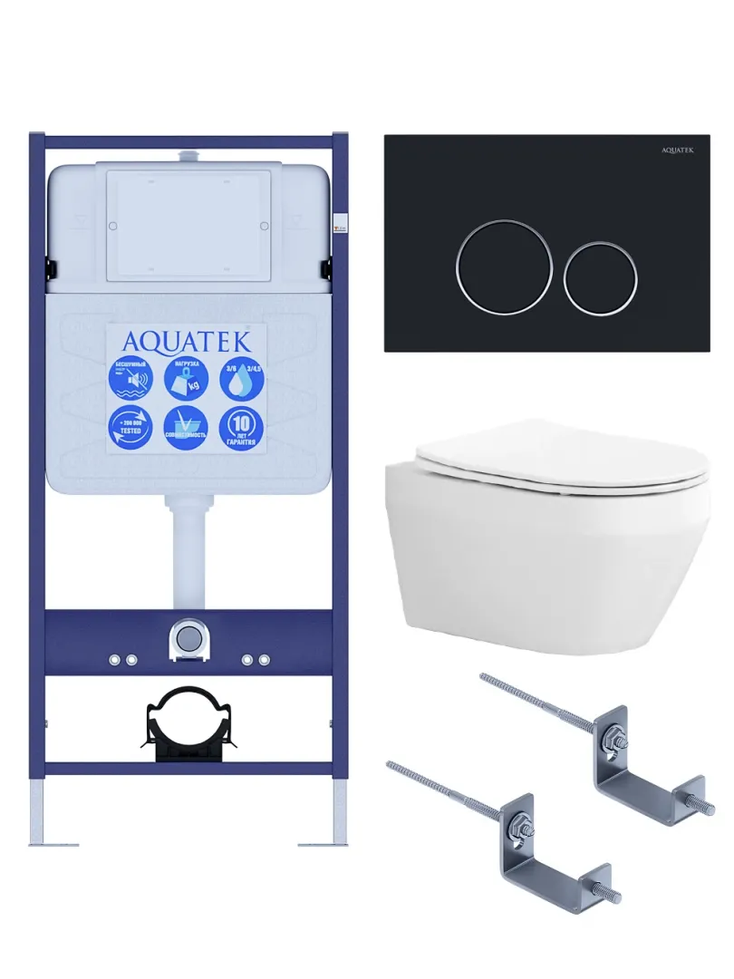 Комплект SET AQUATEK ЛЕЯ Т-0-20 4в1 унитаз с инсталляцией кнопкой и сиденьем микролифт купить