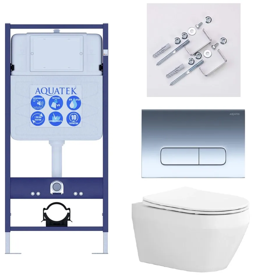 Комплект SET AQUATEK ЛЕЯ Т-016 4в1 унитаз с инсталляцией, кнопкой и сиденьем купить