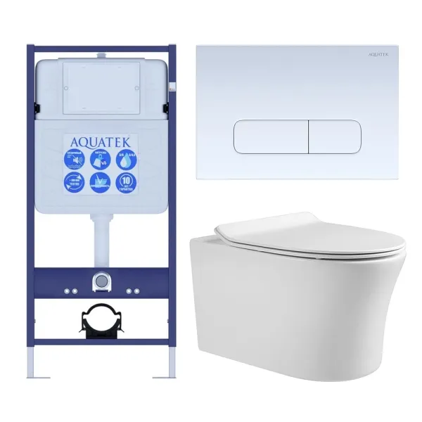 Комплект SET AQUATEK НИКА-013 4в1 унитаз с инсталляцией кнопкой и сиденьем микролифт
