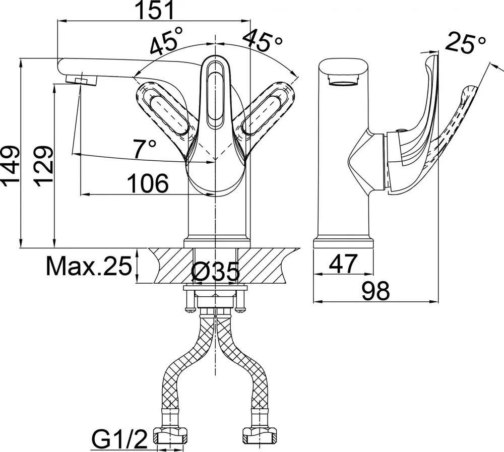 • Высота смесителя: