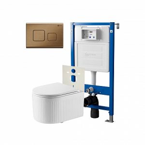 Сет: Система инсталляции Point Элемент для подвесного унитаза PN45120 + Клавиша смыва для инсталляции Point Афина, бронза брашированная, PN44041BB + Унитаз подвесной Point Деметра безободковый, белый, сиденье дюропласт, микролифт быстросъемн PN41121