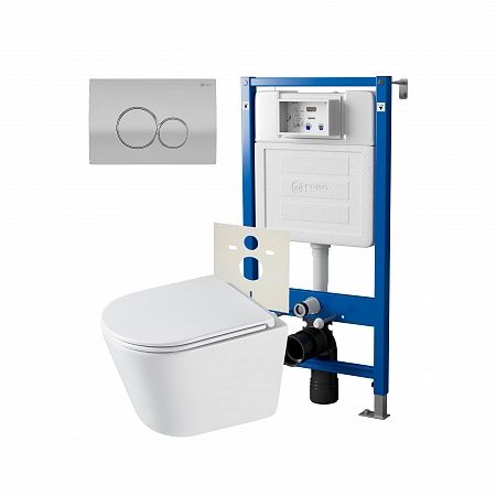 Сет: Система инсталляции Point Элемент для подвесного унитаза PN45120 + Клавиша смыва для инсталляции Point Виктория, цвет сатин/хром, PN44061SC + Унитаз подвесной Point Венера безободковый, белый, сиденье дюропласт микролифт быстросъемное PN41071