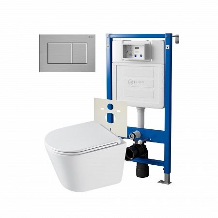 Комплект унитаза с инсталляцией Point Элемент PN48304SB с сиденьем МикролифтСет: Система инсталляции Point Элемент для подвесного унитаза PN45120 + Клавиша смыва для инсталляции Point Ника, нержавеющая сталь, сталь брашированная, PN44081SB + Унитаз подвесной Point Венера безободковый, белый, сиденье дюропласт микролифт быстросъемное PN41071