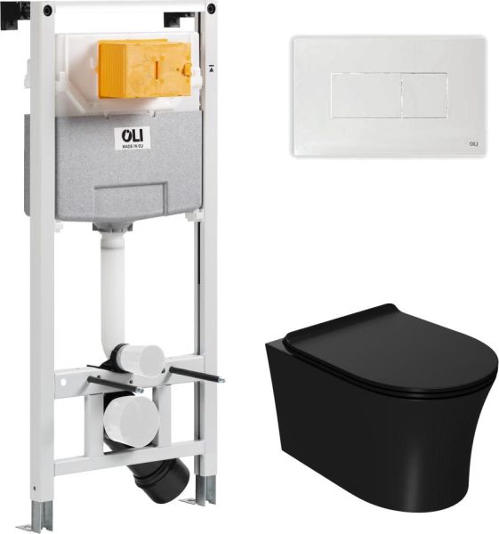 Инсталляция для унитаза. Рама инсталляции изготовлена из стали и покрыта прочной порошковой антикоррозионной краской. Отличительная особенность данной системы инсталляции - возможность регулировки по высоте на 20 см с помощью ножек из оцинкованной стали. Бачок скрытого монтажа выполнен из полимерного материала HDPE, что соответствует ведущим Европейским стандартам. Для защиты от конденсата, а также обеспечения бесшумной работы, резервуар скрытого монтажа обшит пенопластом.