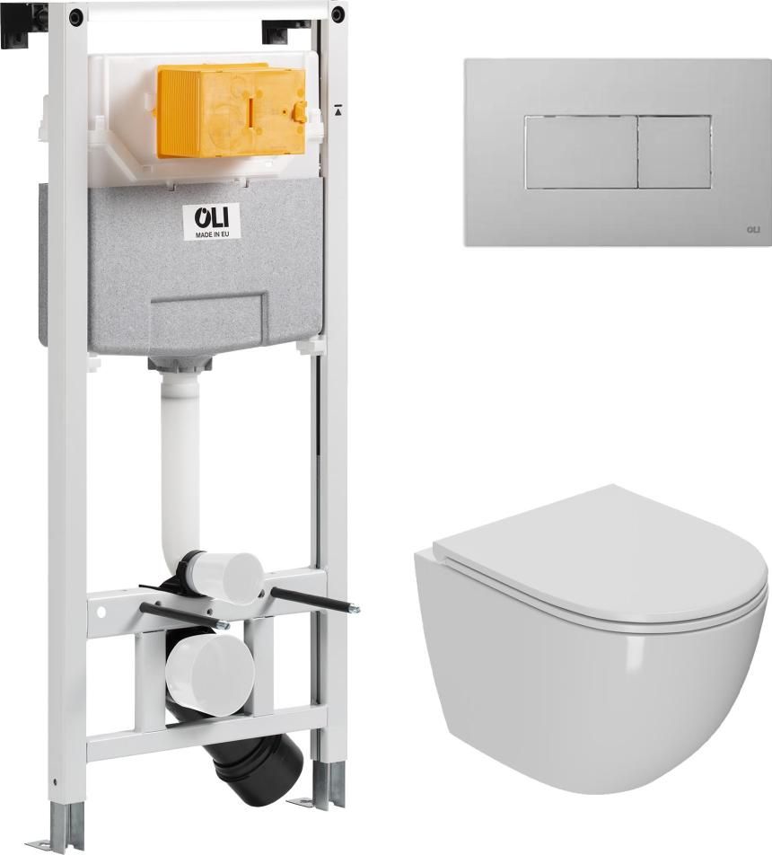Инсталляция для унитаза. Рама инсталляции изготовлена из стали и покрыта прочной порошковой антикоррозионной краской. Отличительная особенность данной системы инсталляции - возможность регулировки по высоте на 20 см с помощью ножек из оцинкованной стали. Бачок скрытого монтажа выполнен из полимерного материала HDPE, что соответствует ведущим Европейским стандартам. Для защиты от конденсата, а также обеспечения бесшумной работы, резервуар скрытого монтажа обшит пенопластом.