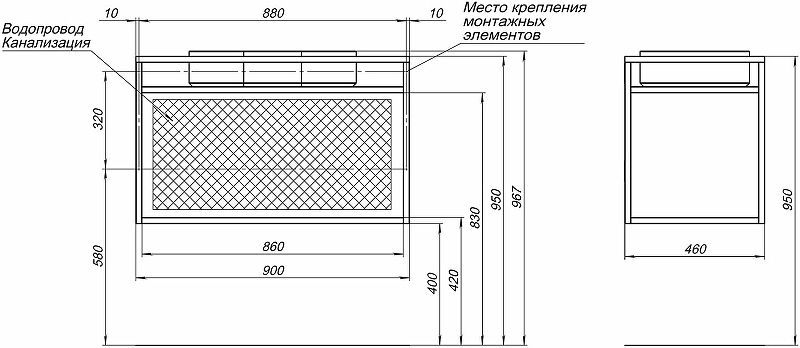 Размеры (ШхВхГ): 900х550х460 мм.