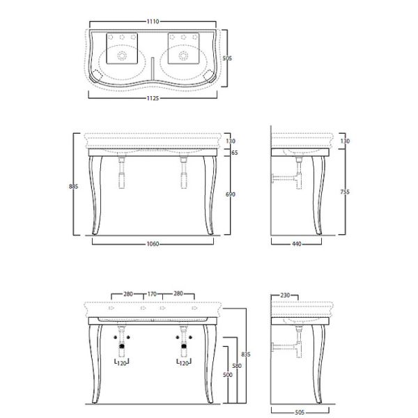 Консоль под раковину Simas Lante 120 LAM120 bi Белая