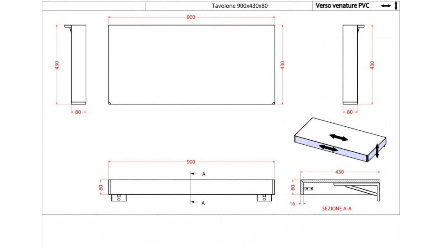 Консоль подвесная Cezares 90x8 Rovere tabacco Tavolone 41581