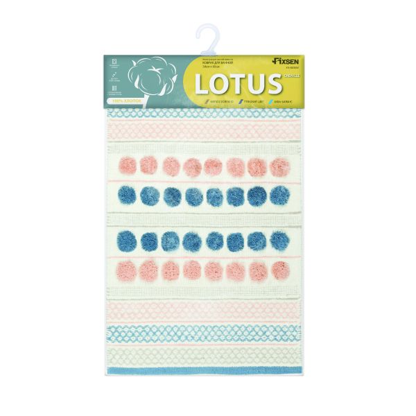 Коврик для ванной 1-ый Fixsen LOTUS, mix (розовый+синий+белый+серый), 50х80см (FX-8030W)