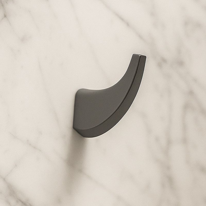 Элегантный крючок  из ZAMAK + SUS-201 с антиследовой поверхностью. Надежно удерживает до 5 кг, сохраняет эстетичный вид без потёртостей. Простая установка с комплектом крепежа.