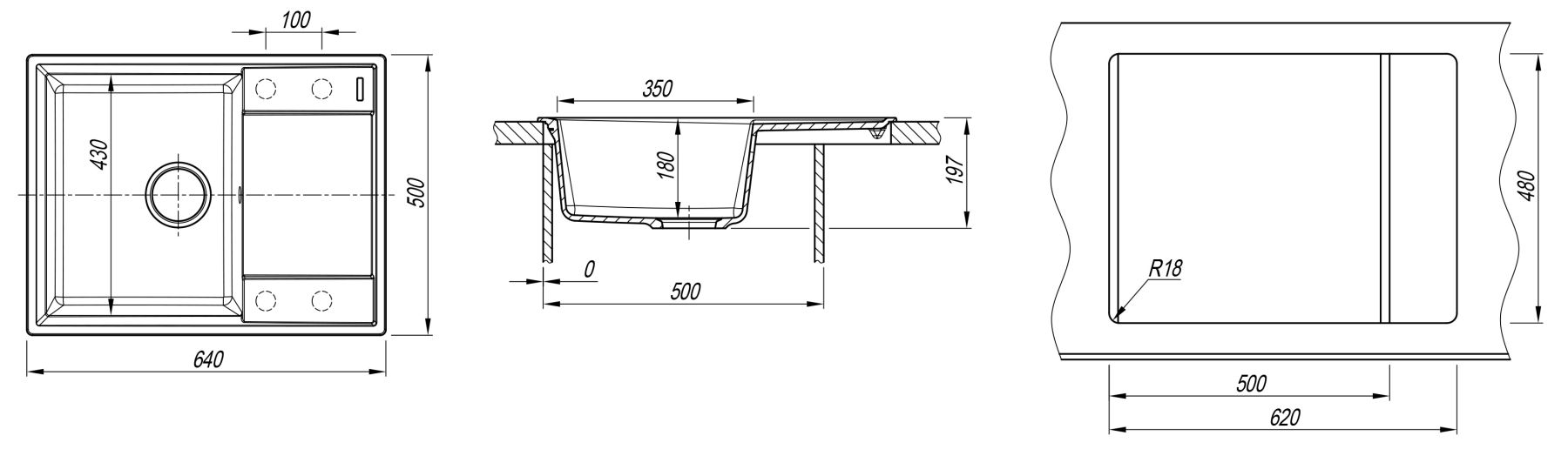 • Отверстия под смеситель: