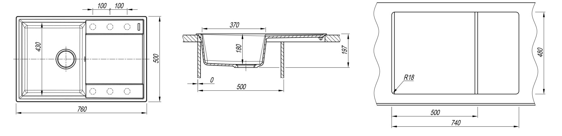 • Отверстия под смеситель: