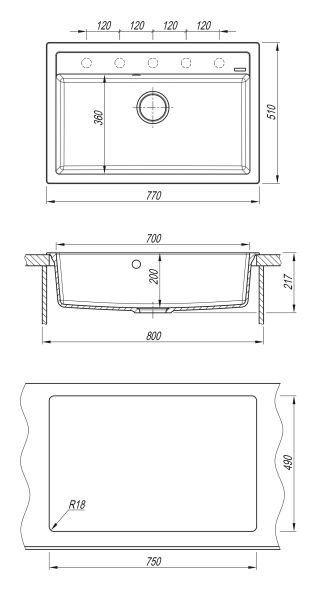 • Мои?ка для монтажа на столешницу с прямоугольнои? чашеи? в блок 80