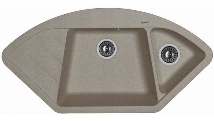 Угловая мойка классической формы с двумя чашами для кухни Florentina Веста изготовлена из композитного материала.
