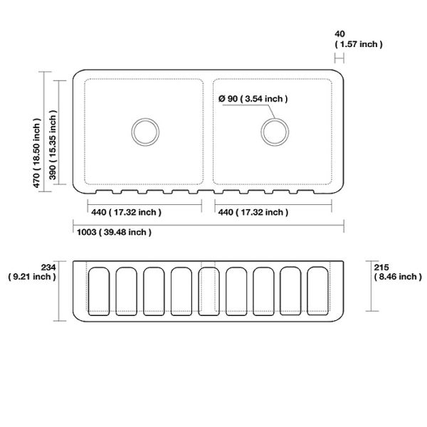 Размер мойки (ШхВхГ): 100.3x23.4x47 см.
