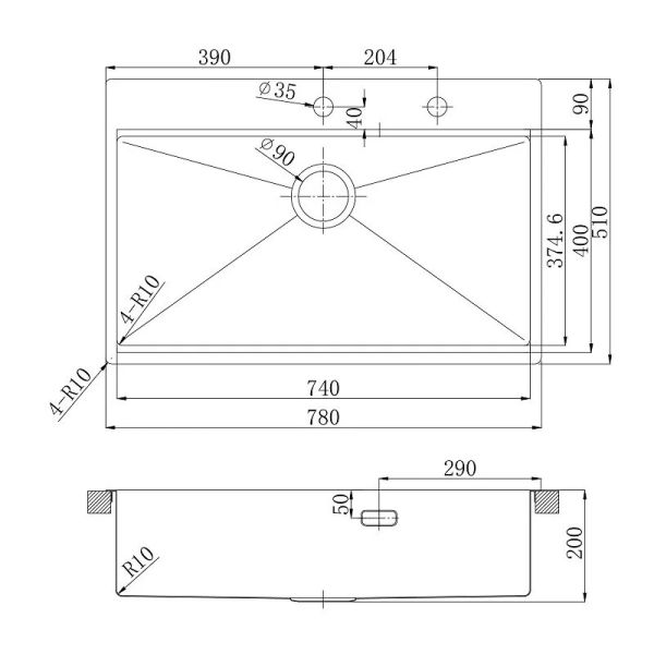• Устойчивость к коррозии. Нержавеющая сталь SUS 304 характеризуется наличием 18% хрома и 10% никеля, что гарантирует ей высочайшую устойчивость к коррозии. PVD-покрытие защищает мойку от воздействия влаги и агрессивных веществ, что особенно важно для кухонной мойки.